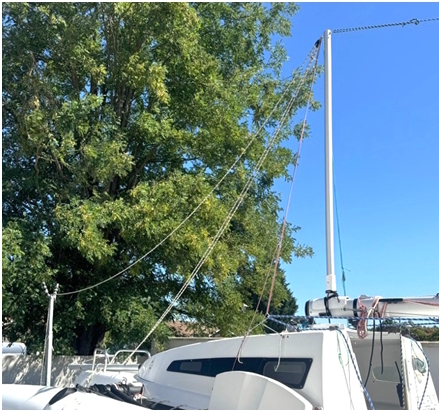 Jean-Marc LANGLOIS nous propose une technique de haubannage de la chèvre qui augmente nettement la tenue du gréément lors du mâtage.