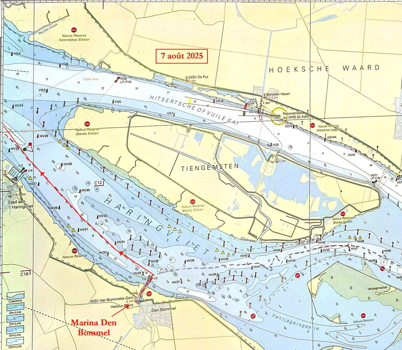 - 7 août : navigation de Den Bommel à la marine de Stellendam (13 mn),