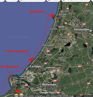 - 9 août : on poursuit de Scheveningen jusqu'à Ijmuiden (26,5 mn),