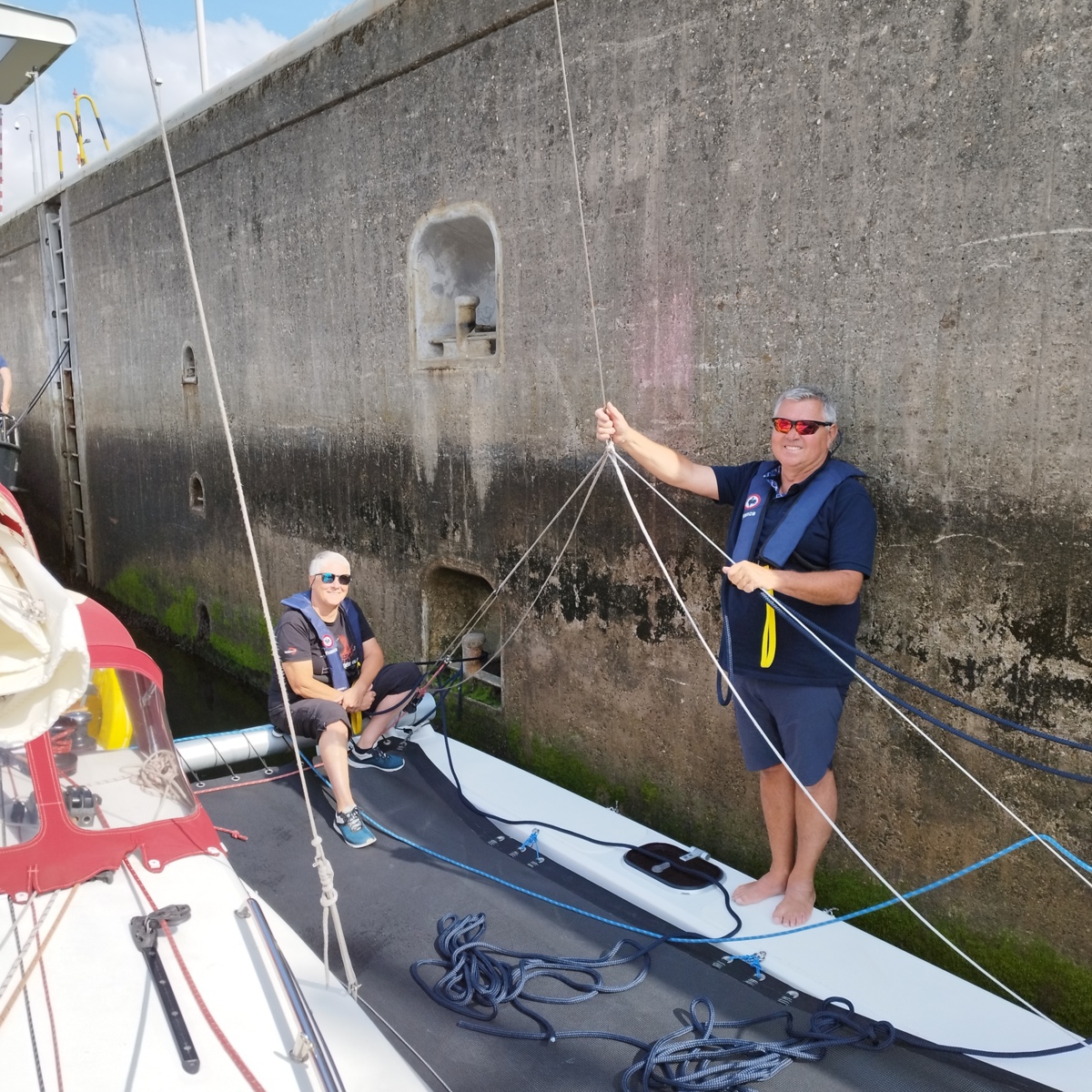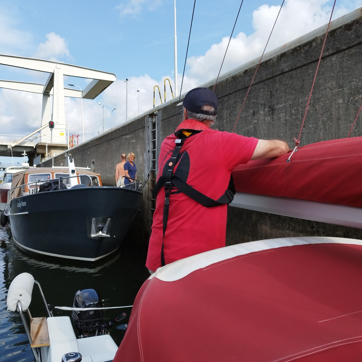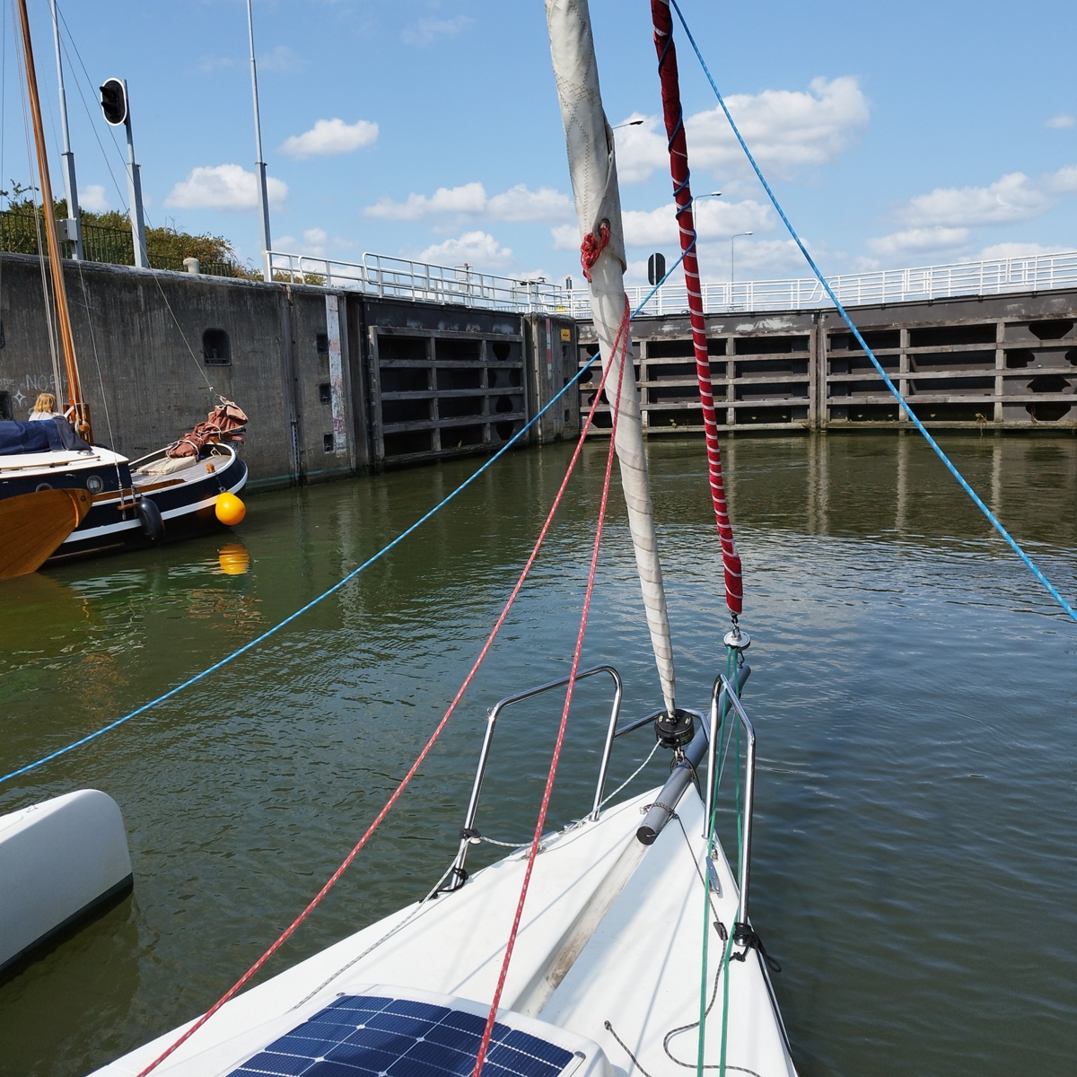 - 8 août : on sort en mer ; navigation de Stellendam jusqu'à Scheveningen (30 mn). Traversée du rail d'entrée du port de Rotterdam. Passage d'une écluse de mer.