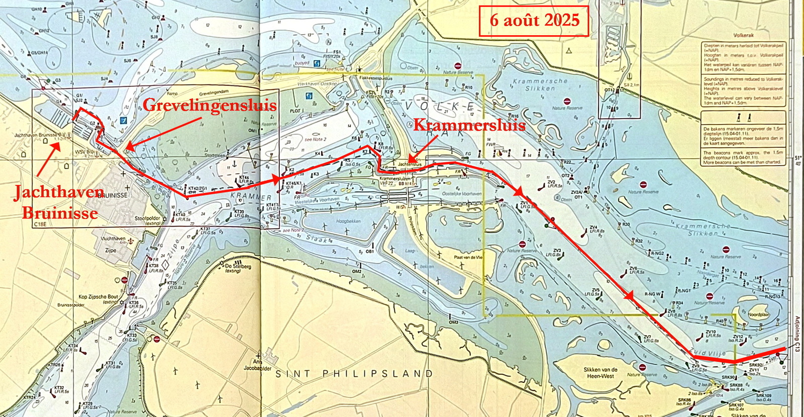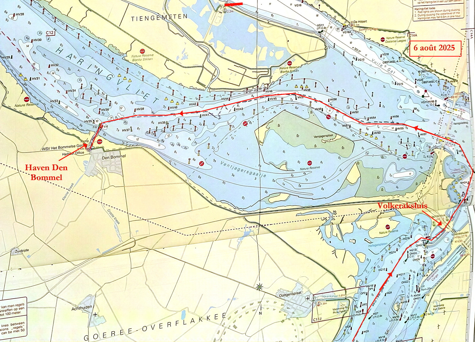 - 7 août : navigation de Den Bommel à la marine de Stellendam (13 mn),