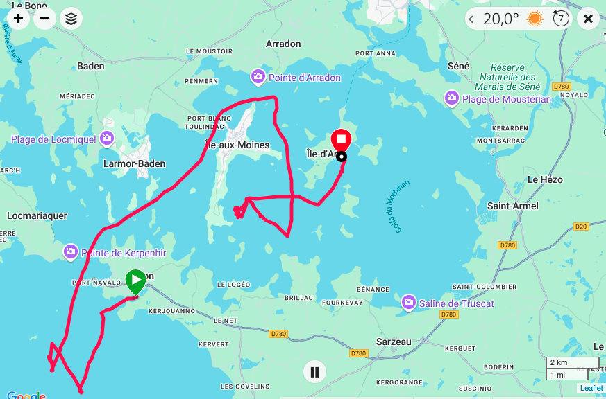 Pour rejoindre le rassemblement de l'Ile d'Arz, nous sommes partis du Pouliguen pour Le Crouesty le 4 juillet. Puis le 5 juillet, regroupement à l'entrée du Golfe pour rejoindre l'île d'Arz. Retour le dimanche 6 juillet par un avis de vent frais et des rafales annoncées à 30 noeuds. Que du Bonheur !